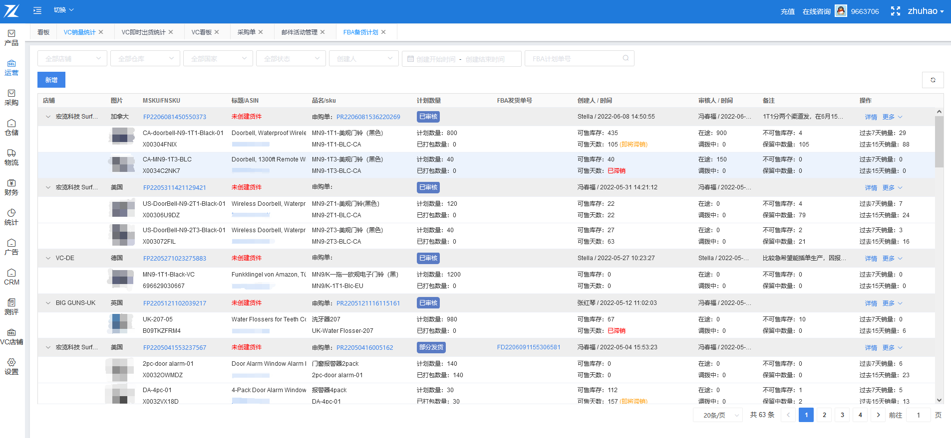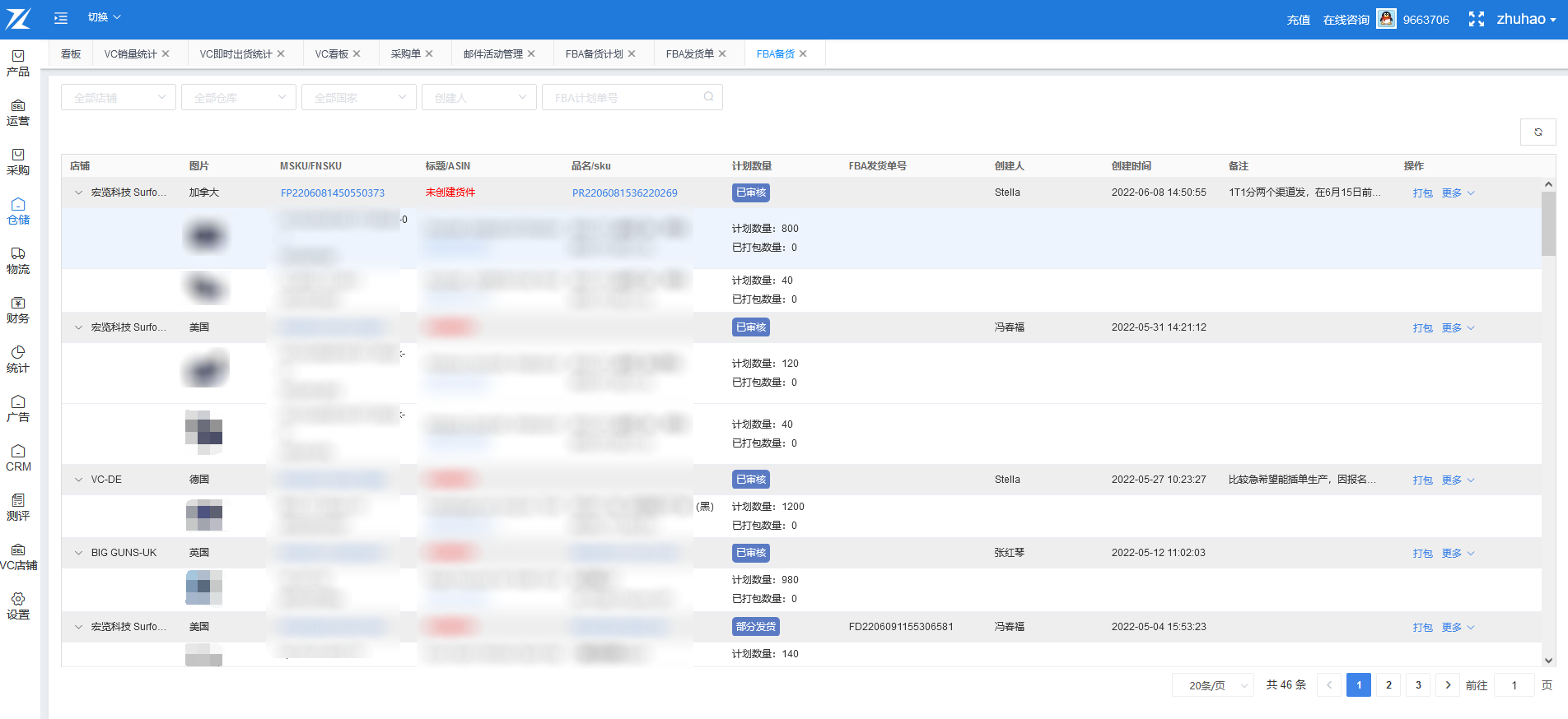 运萤ERP提供了完善的FBA发货功能,方便用户处理FBA发货相关的业务。从FBA备货计划->采购申请->收货入库->创建FBA发货单->仓库出库,整个FBA发货流程都可以通过系统完成。