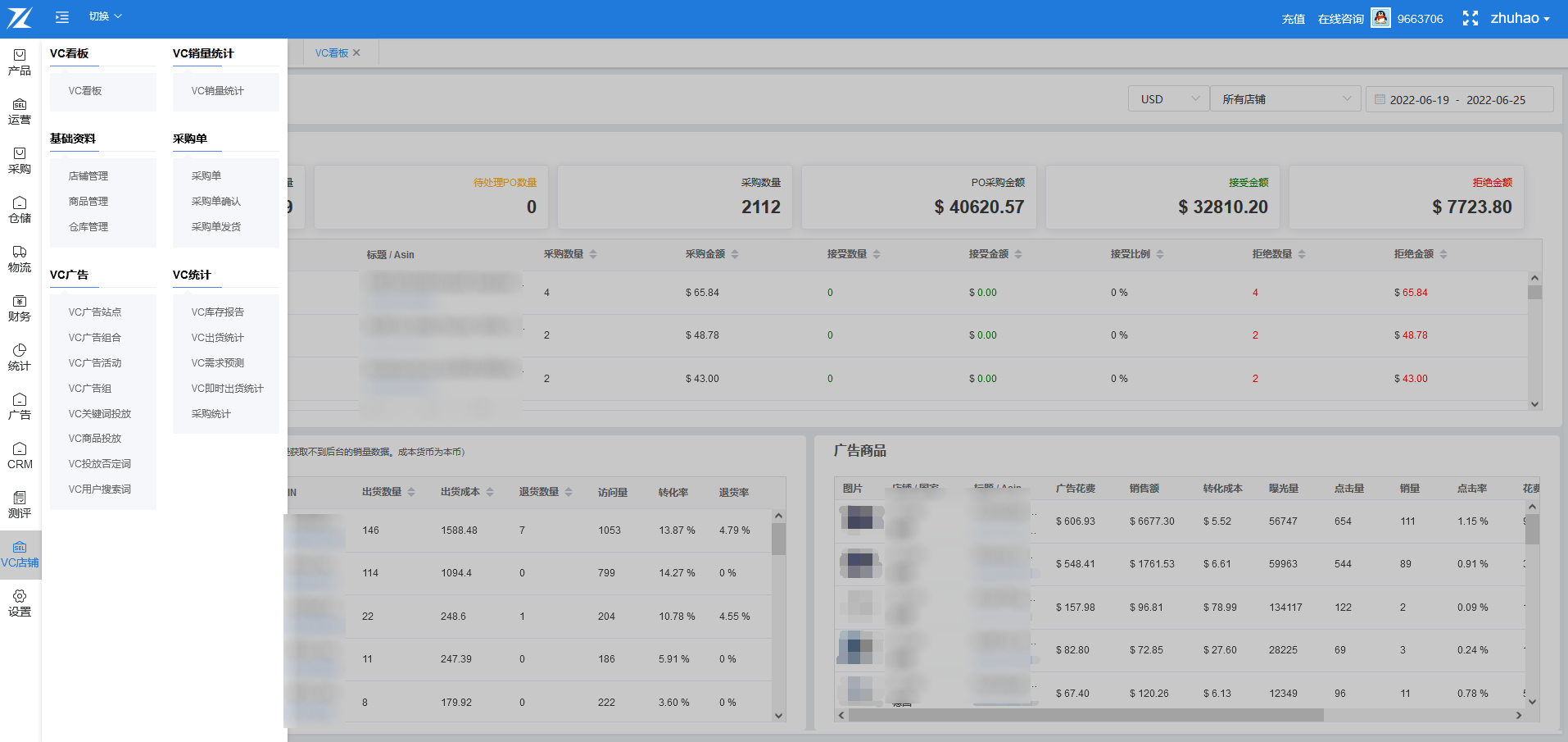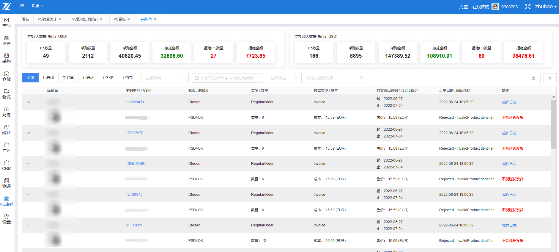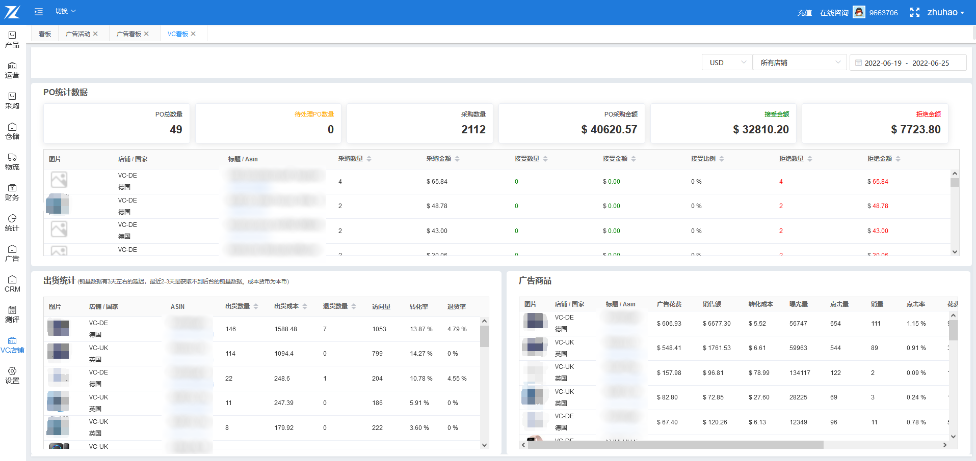 运萤ERP提供了完整的VC采购订单处理功能,广告和各种相关数据报表页面。从采购单的确认->采购单创建发货->打印箱标->扣发货仓库库存,都可以通过系统完成,不需要去后台处理采购订单发货相关的业务。我们提供了各种报表数据,以便用户了解VC店铺的相关各项数据。